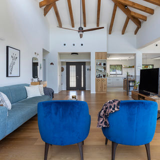 בית שעבר שיפוץ מסיבי, שכלל פירוק גג וחזיתות שנפתחו אל הנוף, אל האור ואל הסביבה שמקיפה אותו, במטרה פשוטה לאפשר לבית לנשום, לפתוח אותו אל הגינה הרחבה, לאפשר לטבע להכנס פנימה, לטשטש את הגבול שבין הפנים לחוץ. בחירה בחומרים טבעיים שמרגישים נכון לבית ולמקום. כ250 מ״ר בנוי בשני מפלסים על מגרש של כדונם.